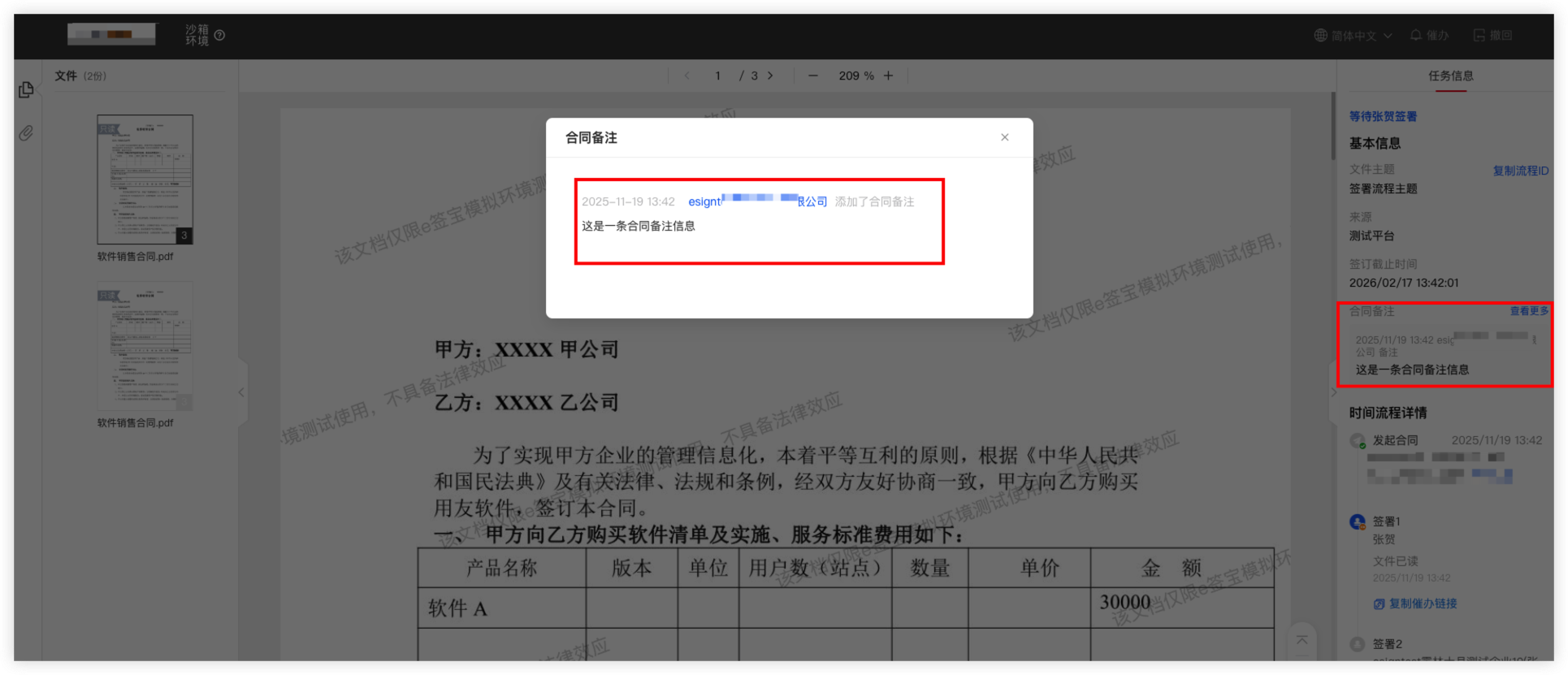- 内部可见:备注信息仅发起方可查看,签署方无法看到。