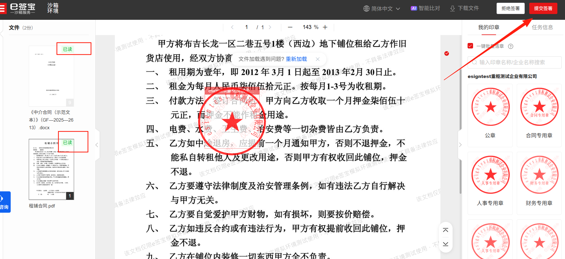 流程中若存在多个待签署文件,需要对每个文件都重复”阅读到底部“的操作,当所有待签署文件都为”已读“状态后,才允许提交签署。