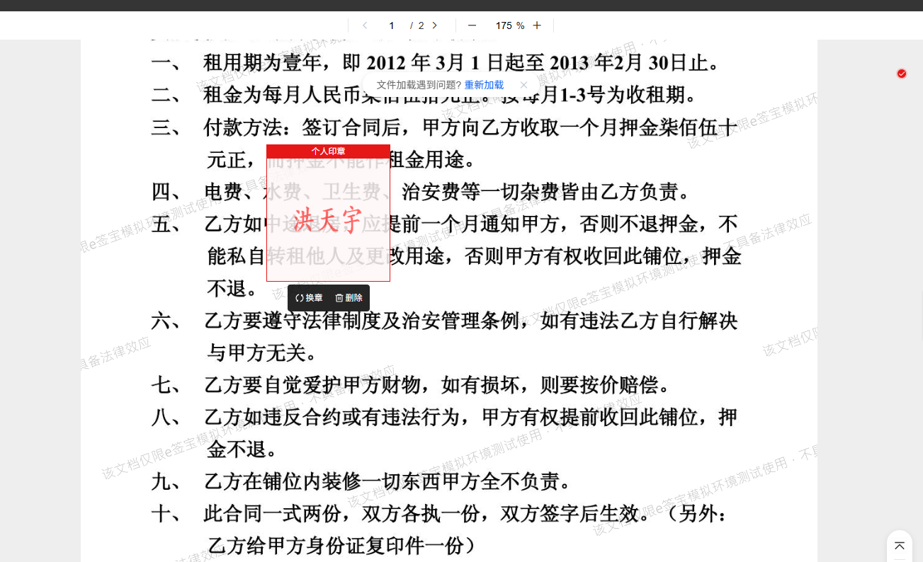 不设置签署区尺寸参数时,以默认印章原始尺寸盖章效果:(个人印章76px,企业印章159px)