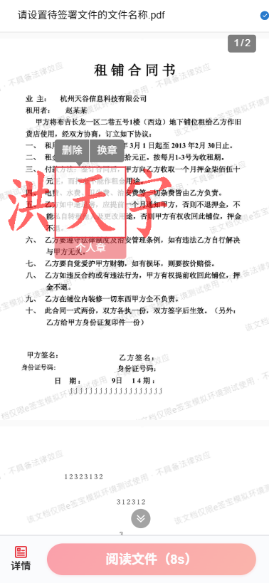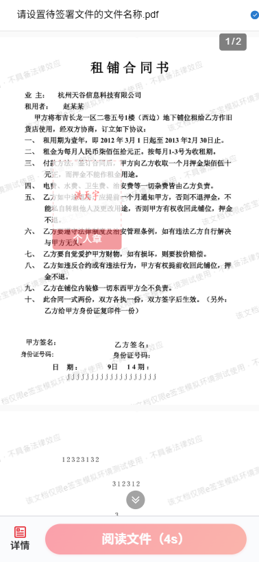- 以上效果为pdf文件尺寸为A4大小的显示效果,实际盖章的效果建议以实测为准。