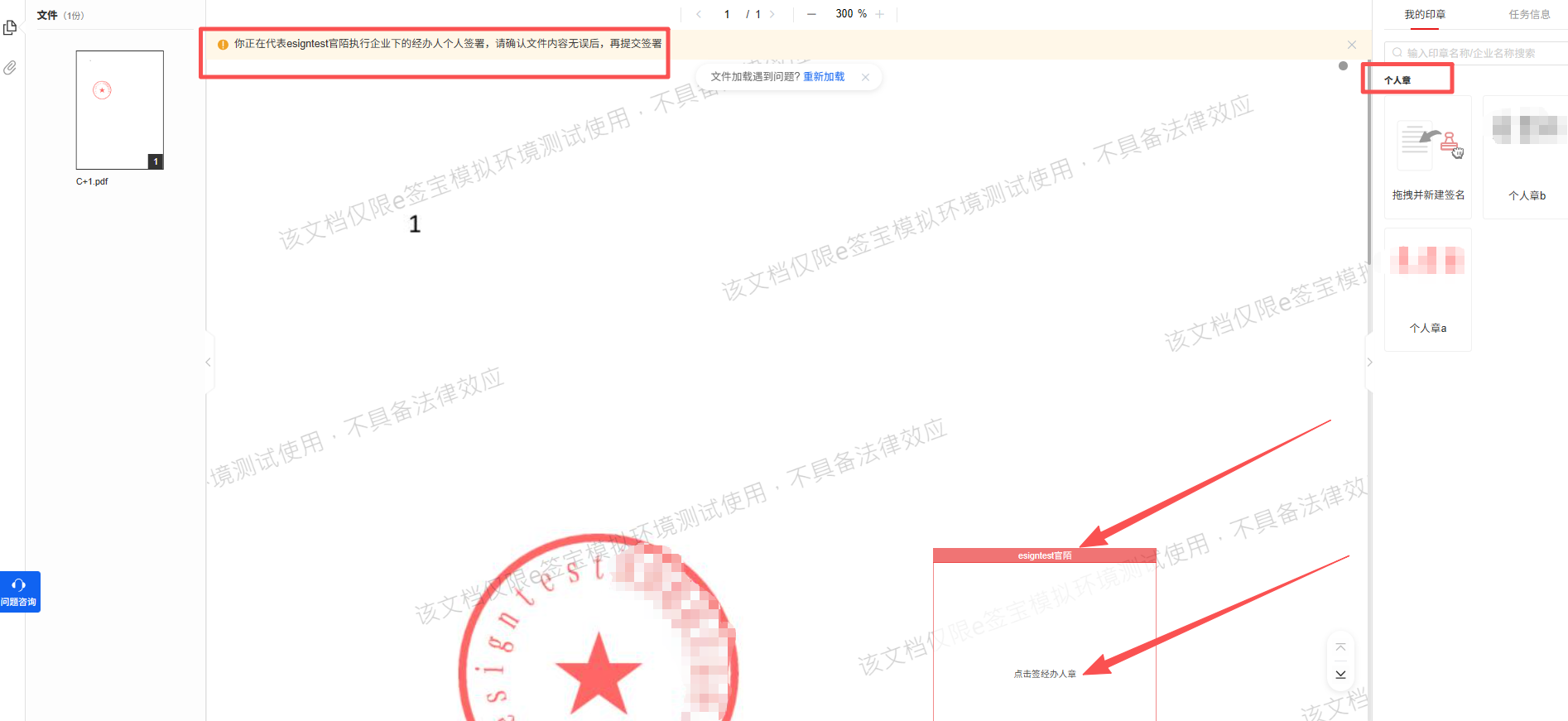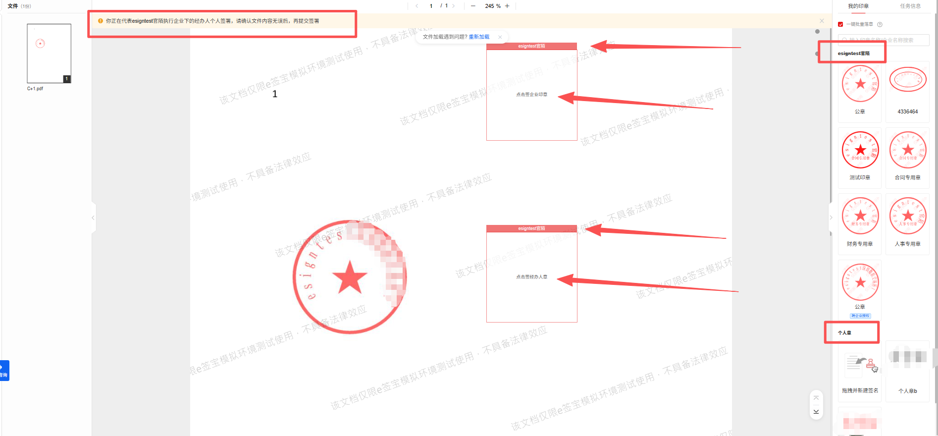 仅经办人落个人章场景效果(合同归属于企业不归属于个人):