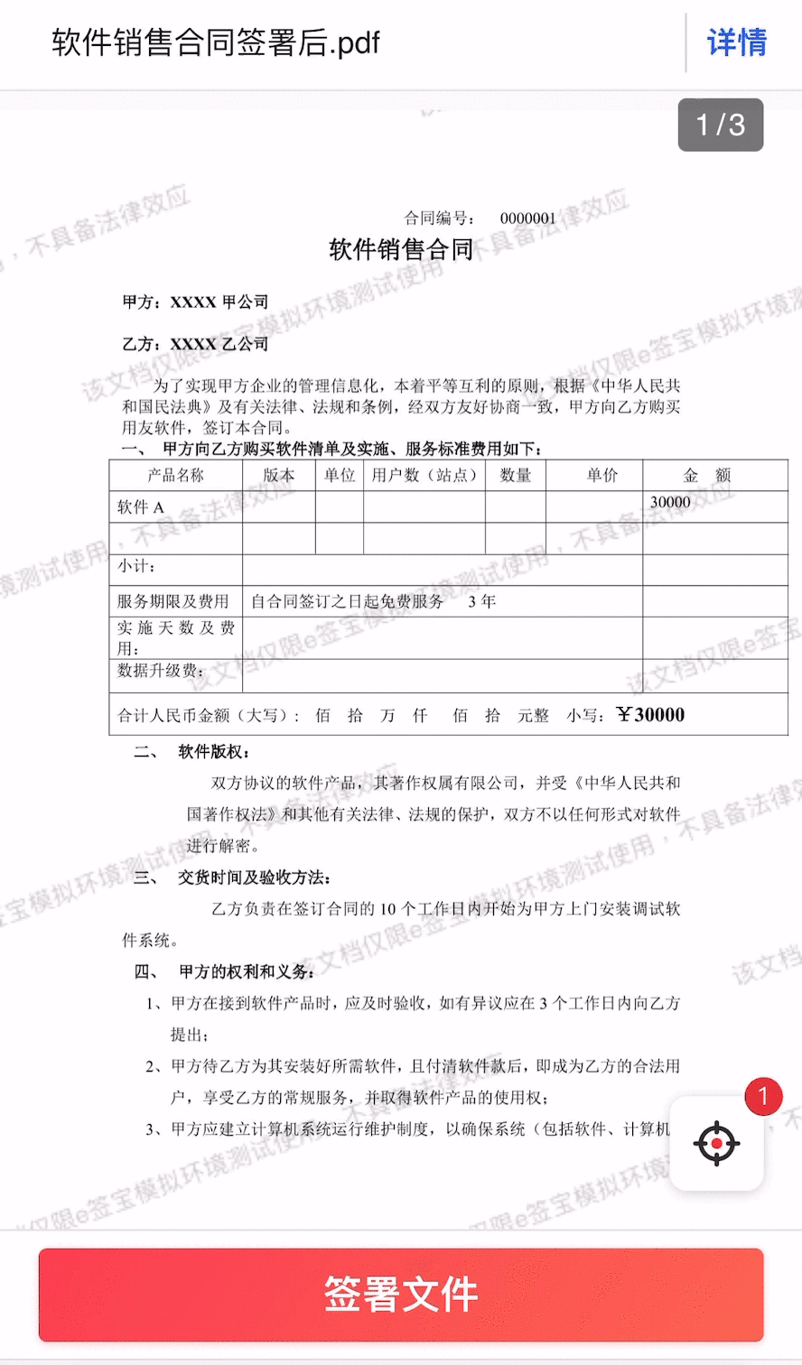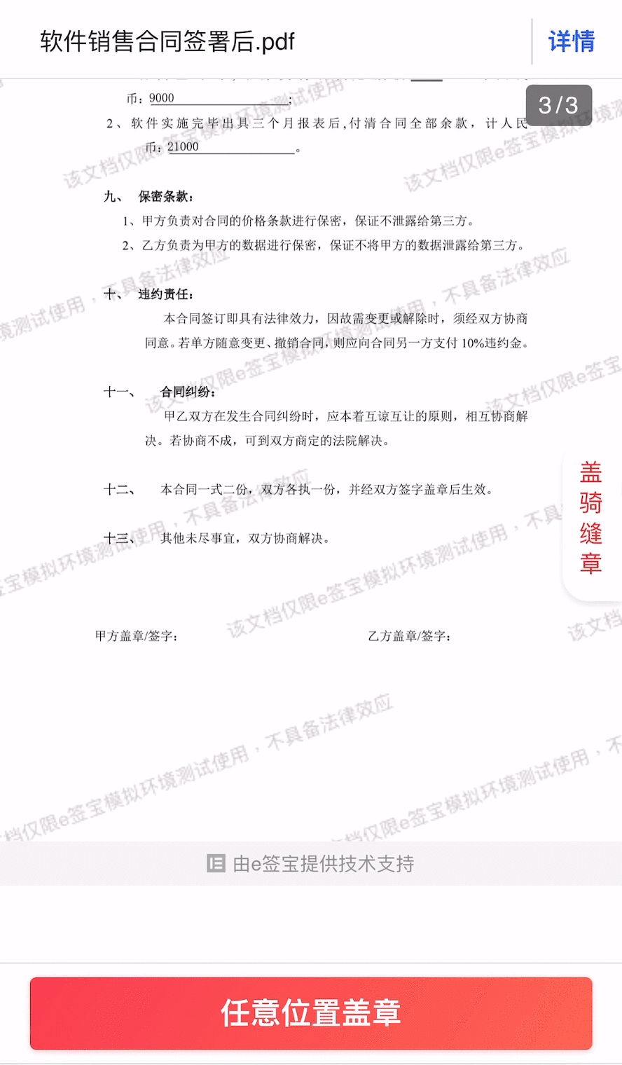自由签章:接口不指定固定签署位置,用户在签署页面自由拖拽印章在任意位置签署。