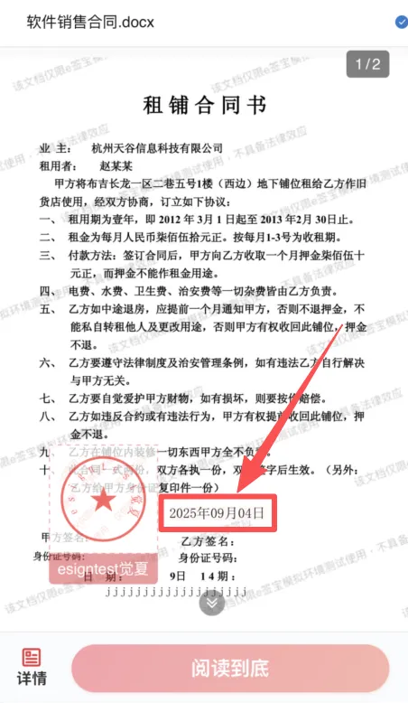 注:印章和签署时间必须在同一页码内。建议直接默认指定在印章下方,无需额外计算签署时间的坐标位置。