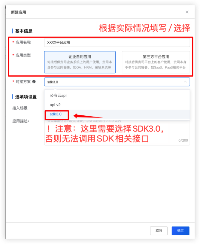 对接方案:必须展开下拉框,必须选择sdk3.0,否则无法使用