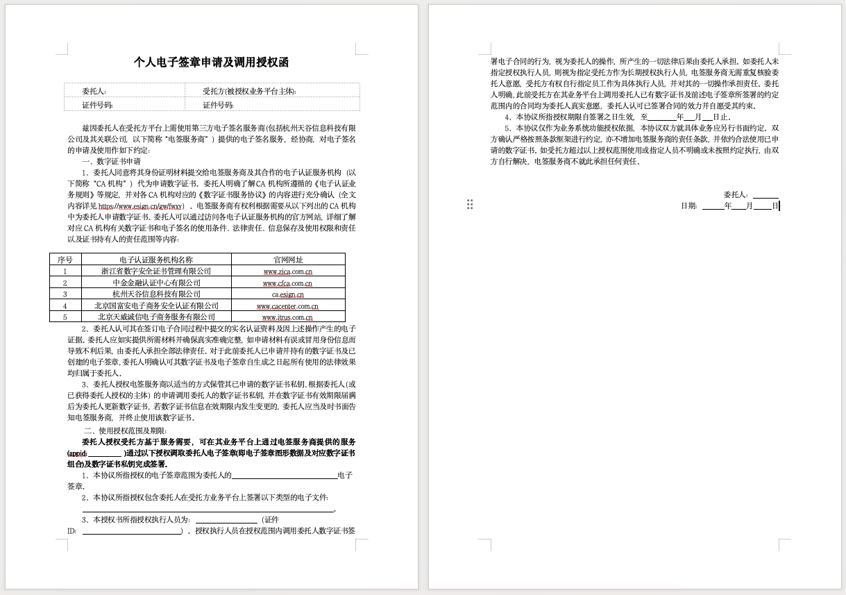 点击下载 个人电子签章申请及调用授权函模板(20251030版本).docx历史模板协议:个人电子签章申请及调用授权函模板(20250813版本).docx个人电子签章申请及调用授权函模板.docx(初版)